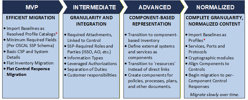 The OSCAL Foundation recommends the following addoption path for migrating legacy FedRAMP SSP content to OSCAL.